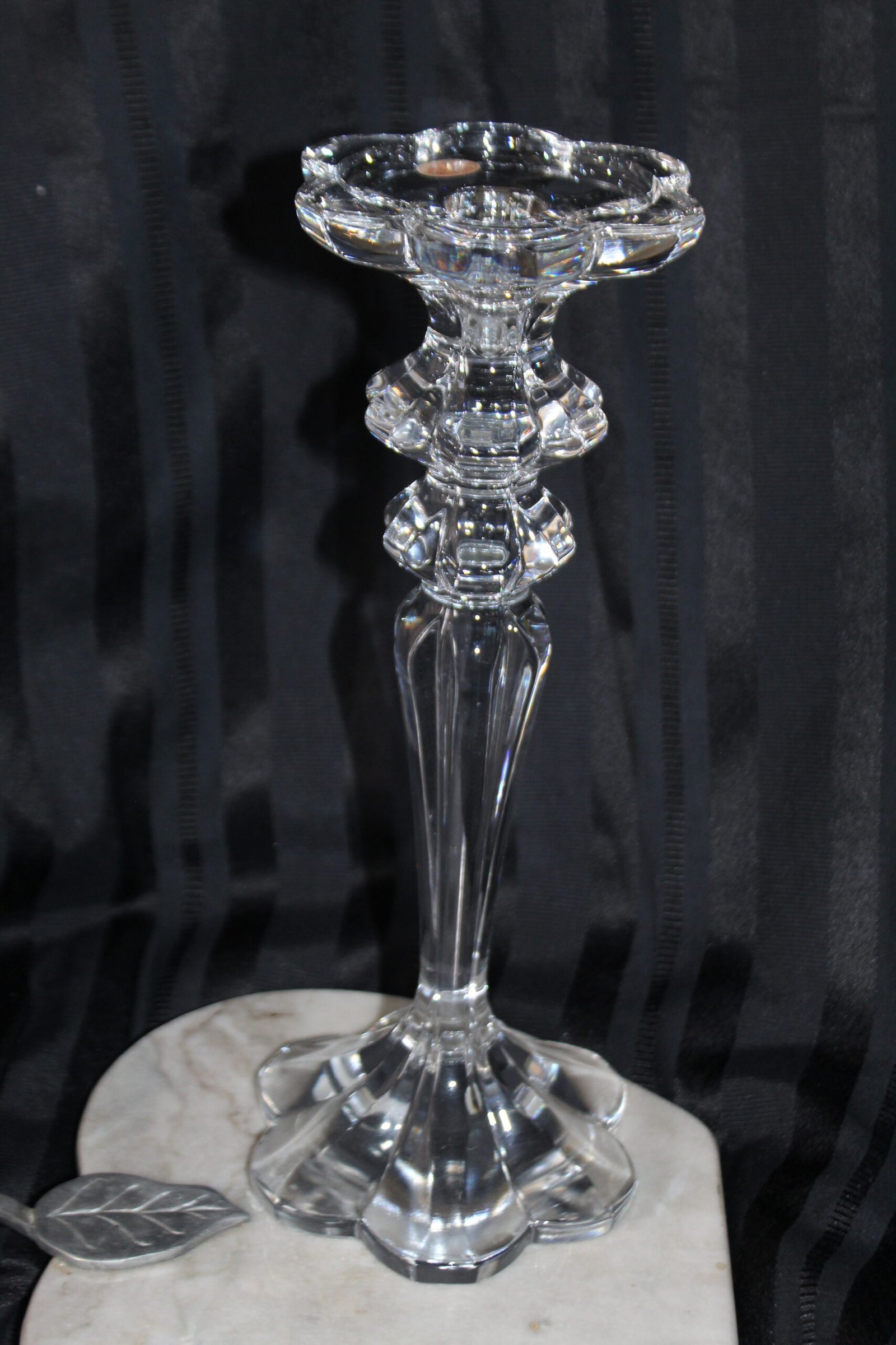 Este elegante portavelas de cristal facetado y pedestal estilizado destaca por su forma alta y delgada, ideal para velas decorativas largas o velas gruesas de estilo europeo. Su tallado genera destellos de luz y lo convierte en un objeto perfecto para centros de mesa, altares, vitrinas o ambientaciones románticas.